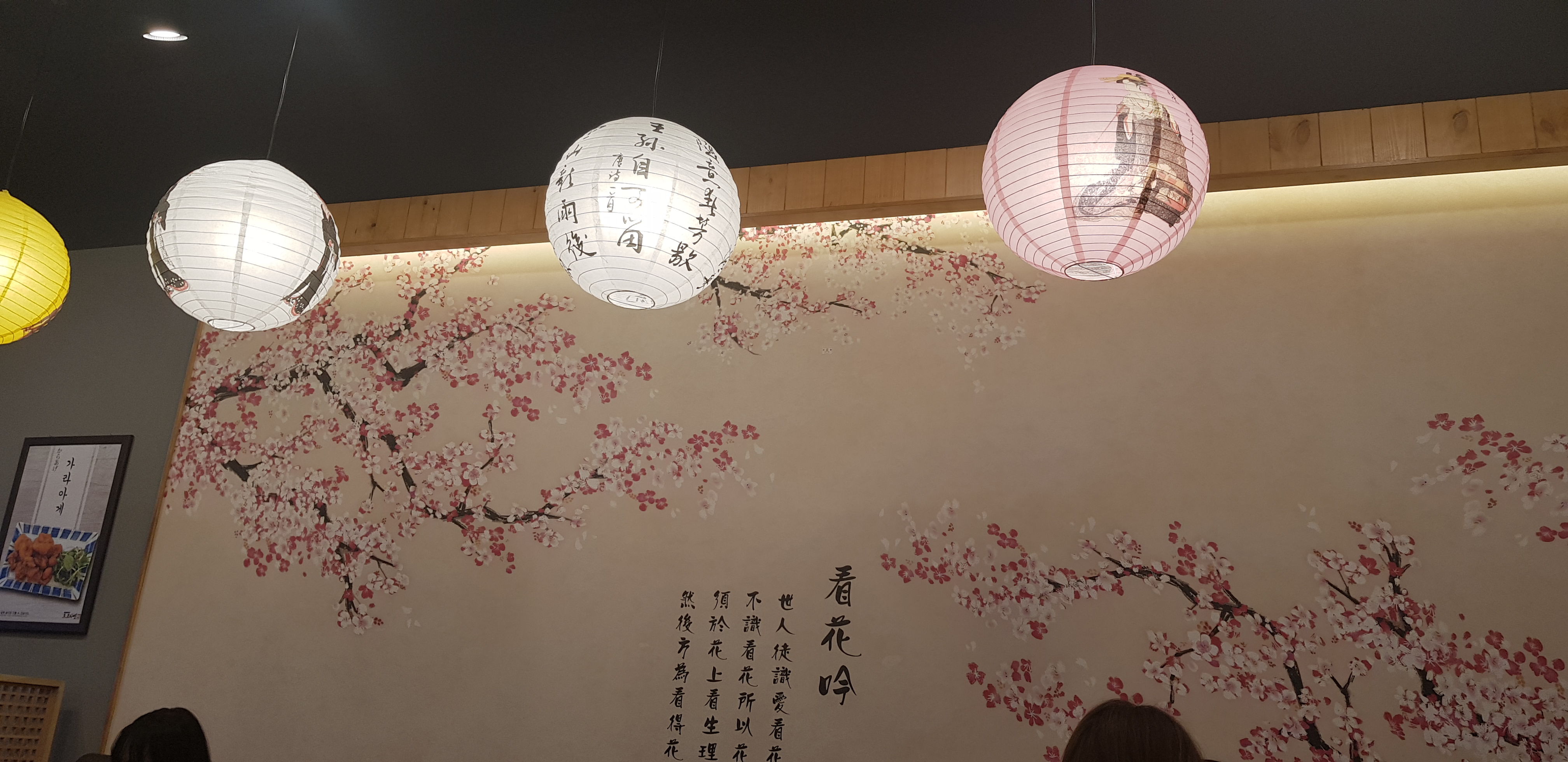 일본 느낌이 나는 벽화('사쿠라네 사쿠라야~')와 일본식 갓등이 보입니다.