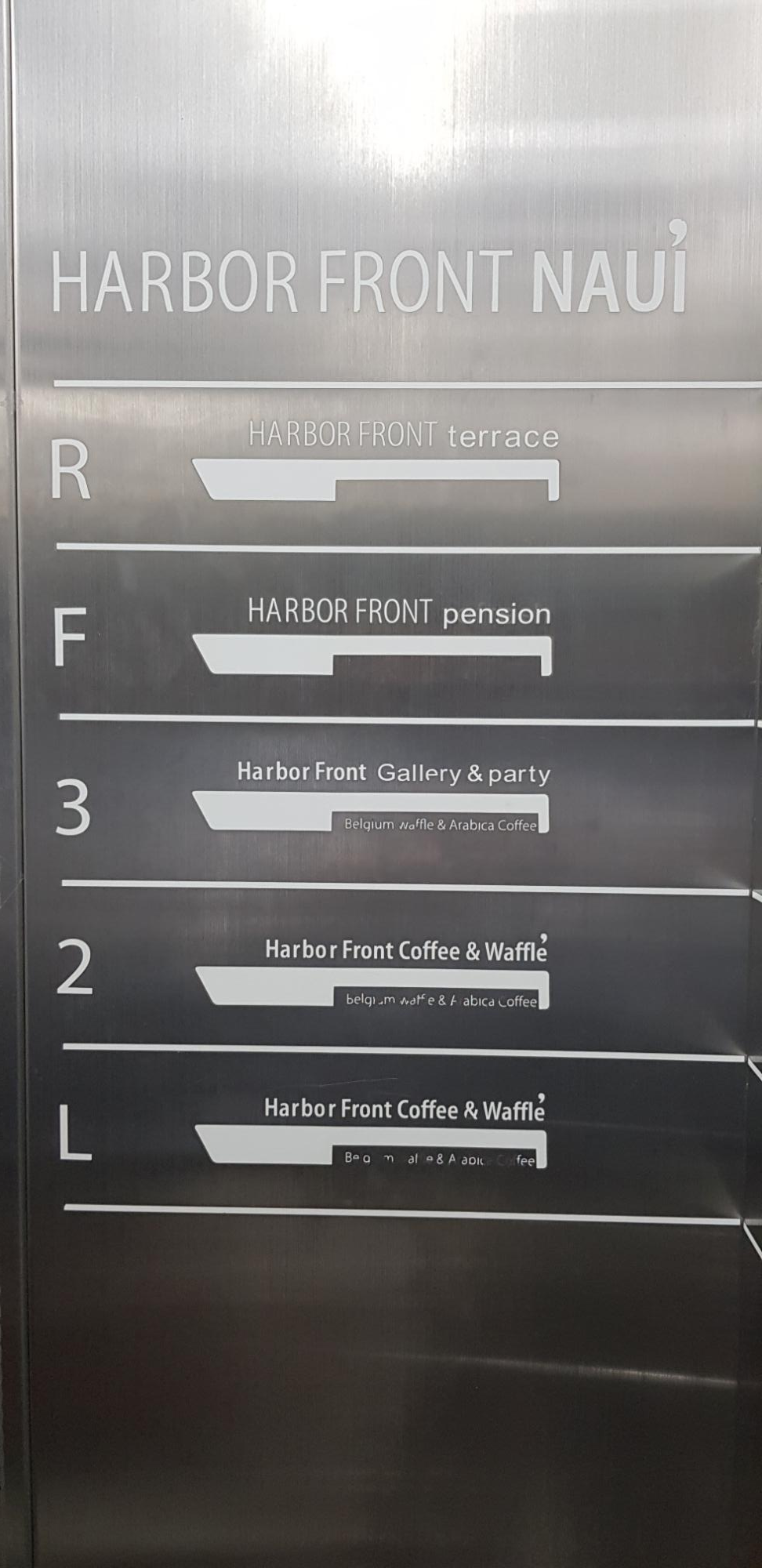 5층 짜리 단독 건물이고, 5층에 위치한 하버프론트 테라스는 어느 방향으로든 바다가 보입니다.