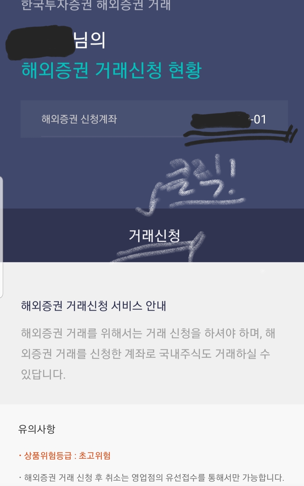 여러분! 주의하실 점은 해외 주식투자는 초고위험군에 속하는 위험 상품입니다.