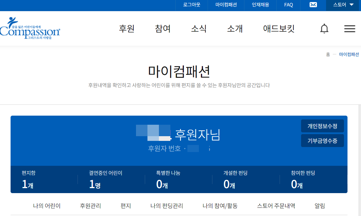 한국 컴패션과 함께 어린이 후원 시작(컴패션 코리아, 정기 후원, 기부)